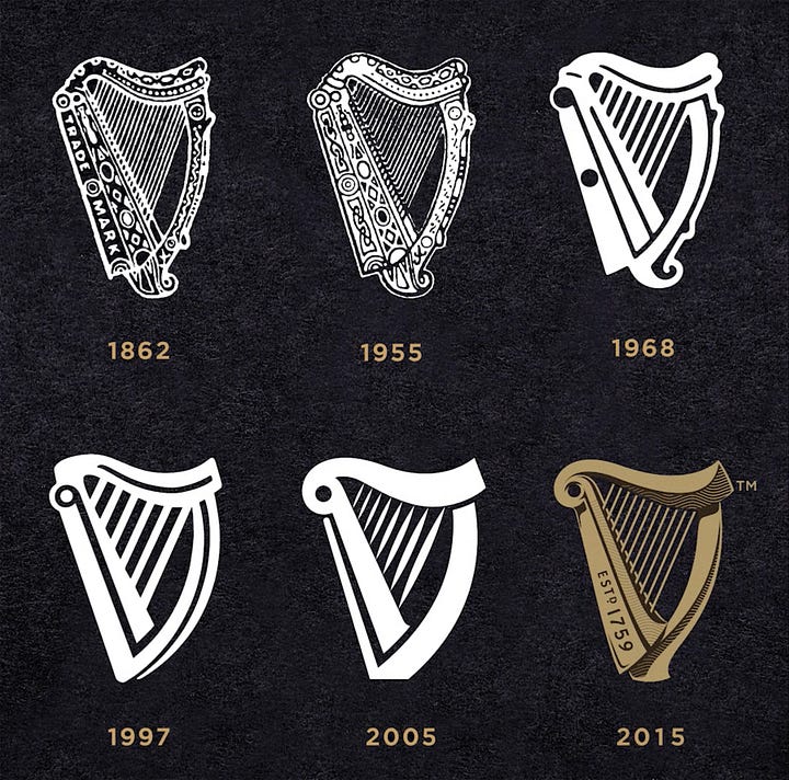 The development of the Guinness harp trademark is closely linked to the history of the brand’s packaging and advertising. The design is based on a famous 14th century Irish harp known as the O’Neill, or Brian Boru harp, preserved in the library of Trinity College Dublin.
