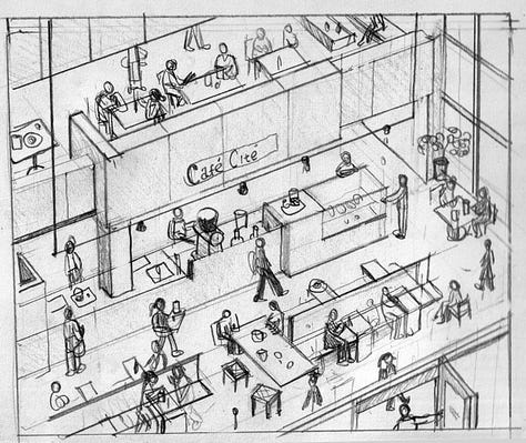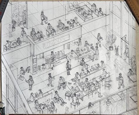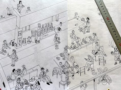 I enjoyed a little behind-the-scenes for Maxim Usik’s CaféCité illustration, part of a collaboration with the excellent Rice Creative in Ho Chi Minh City.